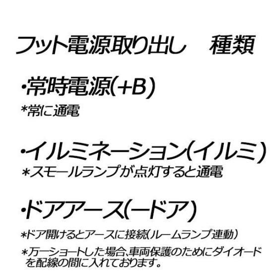 ■WRV WR-V(DG5) フットライト電源カプラーは、さまざまな取り出し電源種類に対応した便利なカプラーです。フットライト専用の常時電源やイルミネーション電源線(イルミ)、ドア連動線(ードア)など、様々な機能を持ち合わせています。 このカプラーを使うことで、車内にフットライトなどを簡単に取り付ける事ができます。特に、ドア連動線(ードア)にはショート防止の回路が組み込まれており、安心してご利用いただけます。ドアが開くたびにアースに通電し、ドアが閉じると電源が遮断される仕組みも備わっています。 自動車好きやDIY好きの方々には特におすすめのアイテムです。車内のイルミネーションをカスタマイズしたい方や、より快適なドライブを楽しみたい方にぴったりのアイテムです。取り付けも簡単で、取扱説明書が付属していますので安心してご利用いただけます。 WRV WR-V(DG5) フットライト電源カプラーで、あなたの車内空間をより快適で魅力的なものにしてみてはいかがでしょうか? 内容品:配線本体1個、カラーの取り付け説明書1枚 <取り扱い注意事項> ・ショートするとコンピューターの回路が壊れる可能性があるため、取り扱いには十分注意してください。