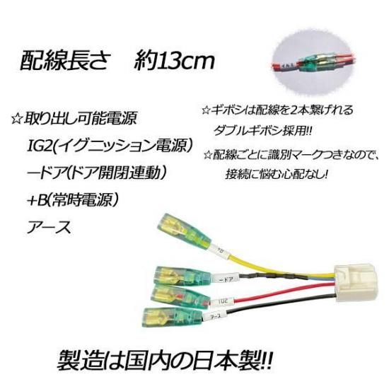< ランドクルーザー 250系電源取り出し オプションカプラー> 常時電源、IG2,アース、-ドア(ドア開閉連動)の電源を簡単に取り出せる日本製パーツが登場しました!ナビを外す必要もなく、検電器を使って電源を探す手間も省けます。ドライブレコーダーを自分で取り付けたい方に最適なアイテムです。 【商品ディテール】 セット内容:ハーネス1個、取り付け説明書1枚 適合条件:助手席の足元にカプラーが付いていない場合 取り付け注意:フォグライトなどの純正用品が付いている場合は取り付けできないことがあります 【商品の利点】 素人の方でも簡単にドライブレコーダー等を取り付けられる!時間と手間をかけずに専門家並みの仕上がりが期待できます。また、電源取り出しが容易になることで、安心してカーライフを楽しむことができます。 【利用シーン】 長距離ドライブやドライブレコーダーを取り付けたいときに最適!旅先での風景やドライブ中の出来事を記録したい方におすすめです。車を大切に乗り続けたいドライバーにとって、このアイテムは欠かせません。 <取り扱い注意事項> ・助手席足元のカプラーに空きがない場合、取り付けられませんのでご注意ください。